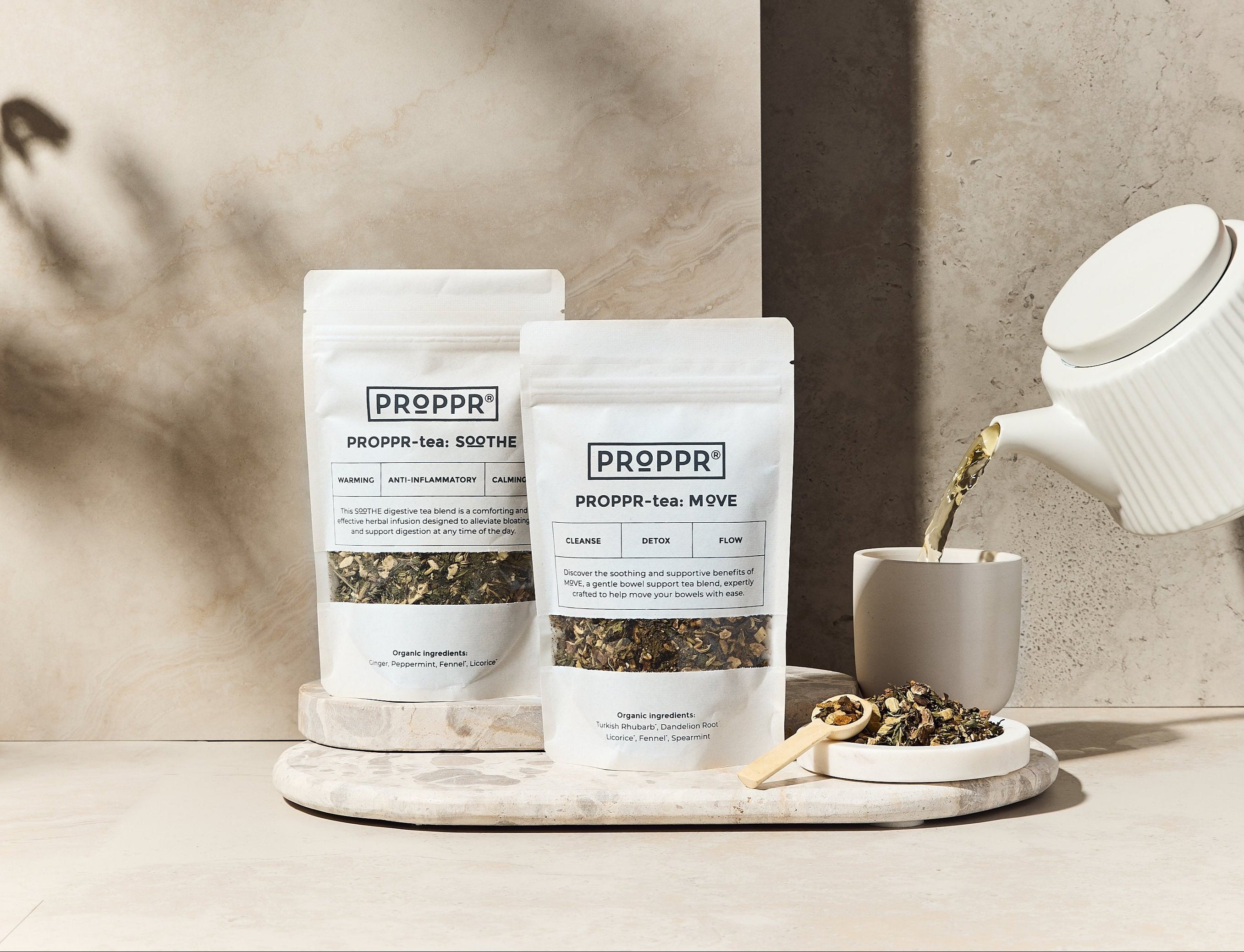 Hand-blended with certified organic herbs, the PROPPR-tea range - created by our in-house gut health nutritionist Zhenya Gerson - is designed to further support your gut health, complementing your daily ‘PROPPing’ habit!
